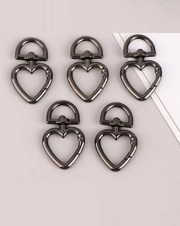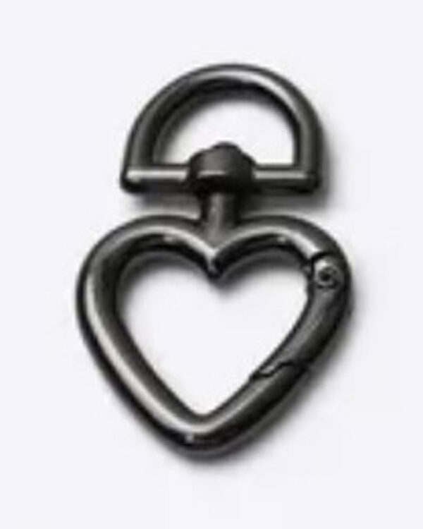 Fermoir connecteur mousqueton pivotant forme cœur Gun métal