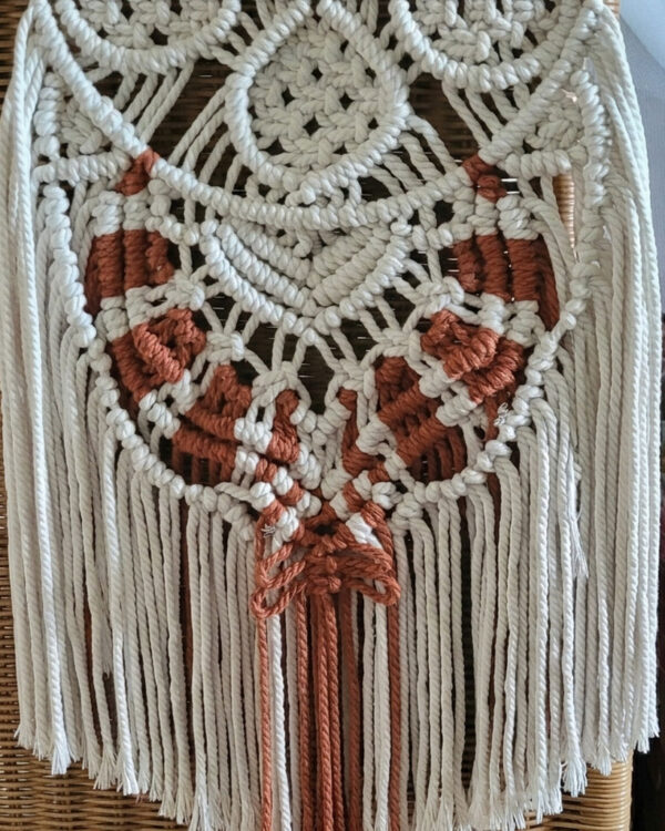 Attrape‑rêves en macramé fait main – décoration murale bohème en fil torsadé 4mm – 100 % coton.