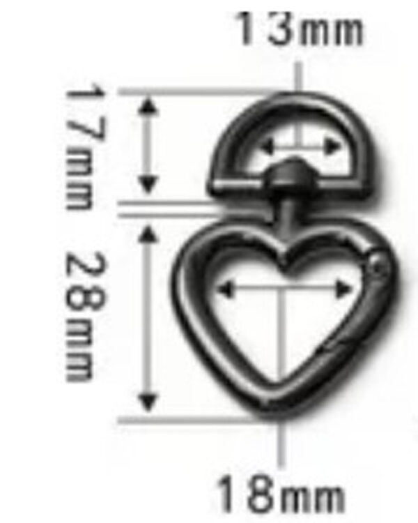 Fermoir connecteur mousqueton pivotant forme cœur Gun métal