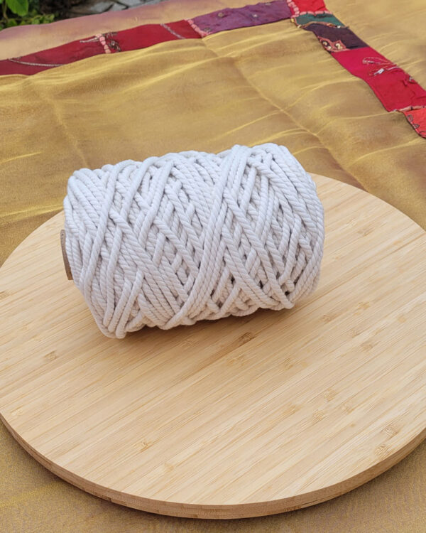 Corde macramé torsadée d’excellente qualité en 100% coton, fabriquée artisanalement. Idéal pour le macramé ce fil est facile et agréable à travailler et peut être utilisé dans de nombreux projets créatifs : macramé, crochet, tissage, décoration, couture, création de bijoux…